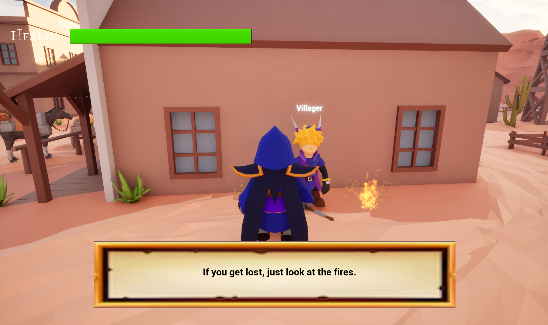 A single-player, third-person fantasy/adventure game in which the players will control an apprentice wizard and complete quests given by the Overseer, in which they must fight four elemental (air, earth, fire, water) wizards and obtain their magical orbs.
